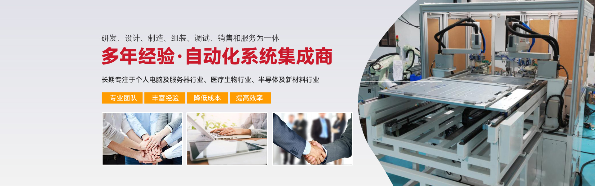 ※ 長期專注亍個人電腦及服務(wù)器行業(yè)、醫(yī)療生物行業(yè)、半導(dǎo)體及新材料行業(yè)三大行業(yè)的自動化組裝、檢測設(shè)備的生產(chǎn)與開發(fā)。